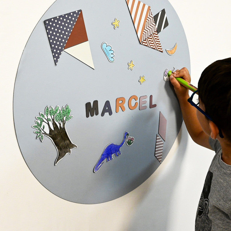 Bij deze complete set ontvang je direct 21 vrolijke geometrische magneten, waarmee je meteen aan de slag kunt. Perfect voor het ophangen van foto's, tekeningen of memo's, maar ook ideaal als speels element in een kinderkamer. De mogelijkheid om de kleurlaag te verwisselen maakt dit magneetbord een duurzame keuze die meegroeit met je interieurwensen.